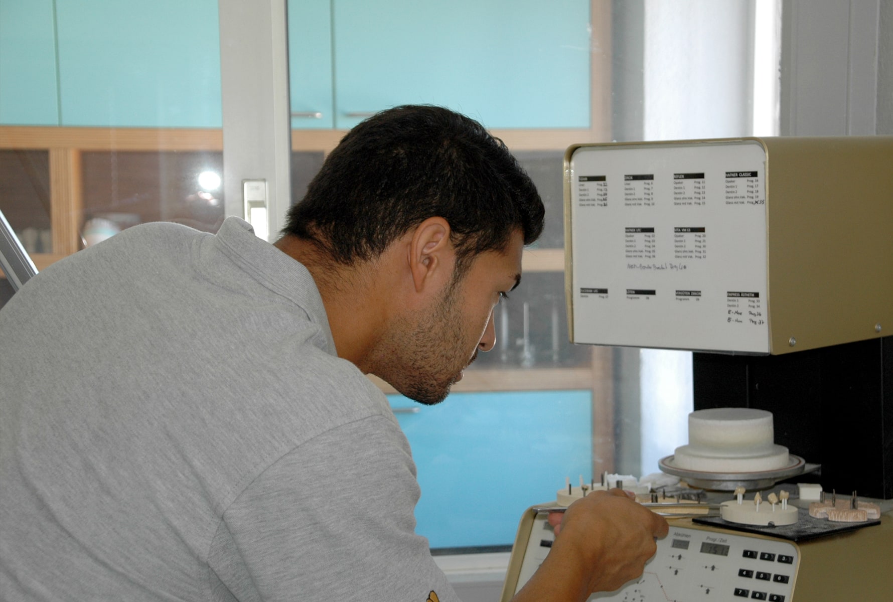 Willkommen in unseren frisch renovierten Laborräumen! Mit Blick auf die Frankfurter Skyline und in einem angenehmen Ambiente entsteht hier hochwertiger Zahnersatz. Schauen Sie sich einfach mal um, dann kennen Sie sich bei Ihrem ersten Besuch schon etwas aus.